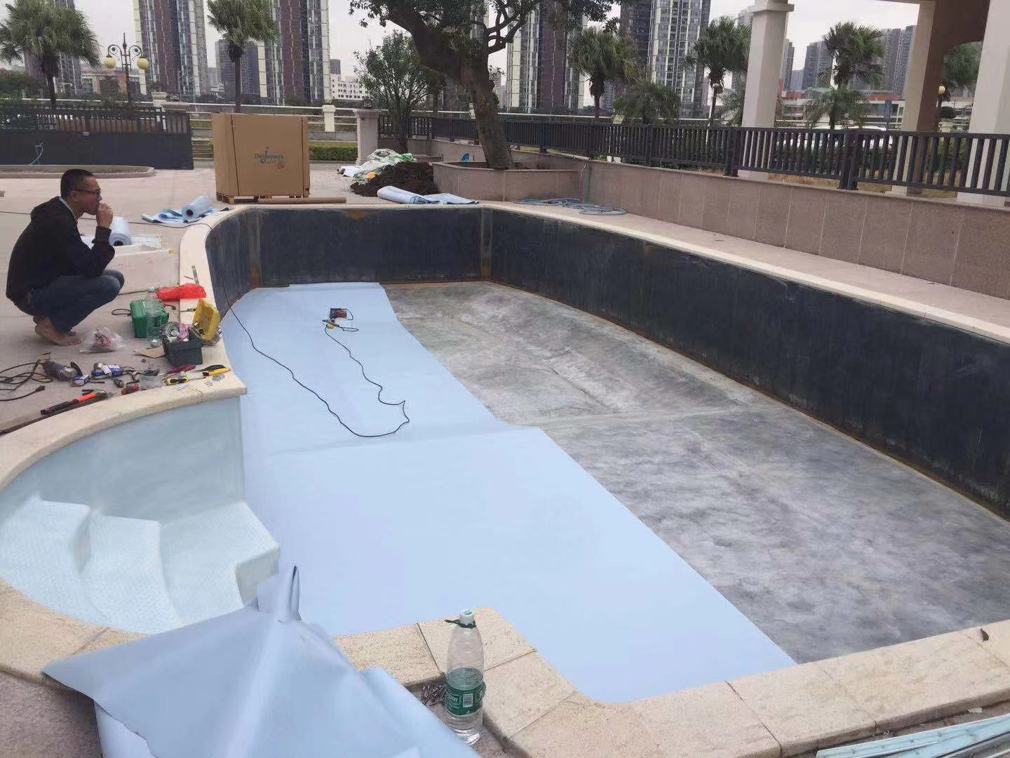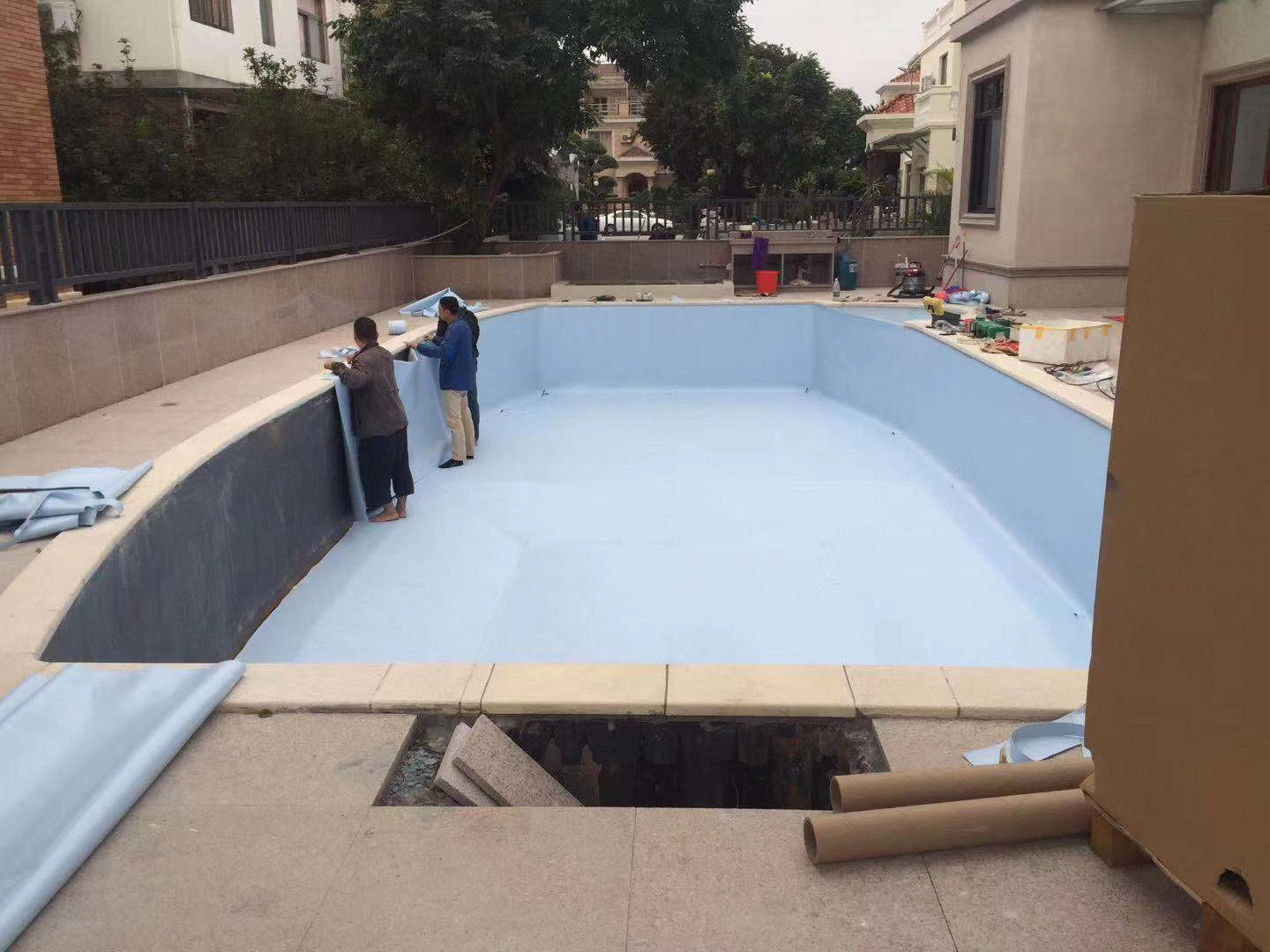 泳池漏水往往是客戶很頭痛的事情,可能的原因有:一是池體土建結構問題,可能因為多次澆筑的連接處裂開;二是傳統泳池管路多,管道接頭拉裂漏水。泳池漏水傳統方法往往很難檢查,也難徹底維修好。浩浦泳池翻新服務無需通過改變您現有的泳池形狀,只需把舊的表面處理掉并更換上我們的加強PVC防水膠膜。同時我們有多種顏色的膠膜來供您選擇并滿足您的需求。這些解決方案不僅僅確保您的泳池不再漏水,同時能簡化您的泳池保養以及降低泳池使用成本。